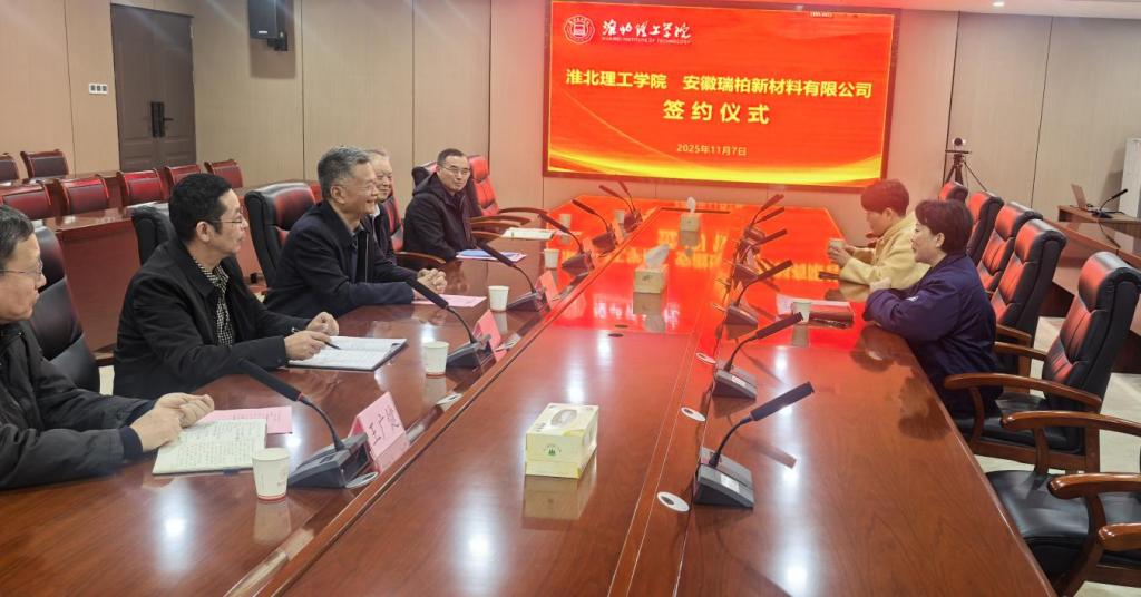 2025年11月7日,立冬节气。逢冬遇暖,这天上午,太阳成集团122ccvip与安徽瑞柏新材料有限公司签署校企合作协议。公司董事长杨兵、副董事长汪建利,教务处处长陈国平、人事处处长侯为波、科技处处长王广健、太阳成集团122ccvip经理万新军等人热情接待安徽瑞柏新材料有限公司总经理张燕、人事行政部经理徐月霞一行,并共同见证协议签署。