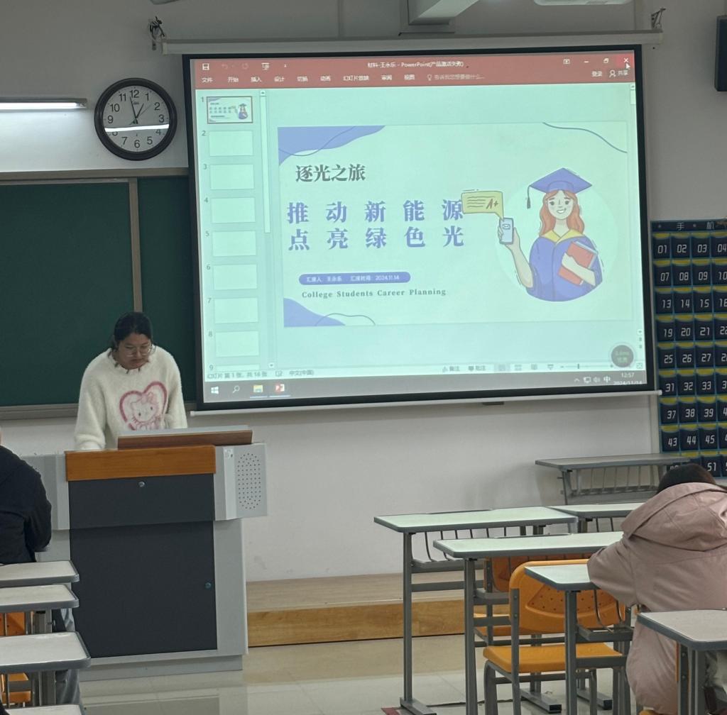比赛中,选手们借助PPT演示,结合自己对于职业生涯规划的理解,围绕职业分析、外部环境、个人成长目标等多方面展开全面分析。有的同学立志成为科研先锋,为推动科技进步贡献自己的力量;有的同学渴望成为教育工作者,用知识和爱心培育未来的栋梁之才;还有的同学期待在商业领域大展拳脚,创造出属于自己的辉煌。他们针对自身兴趣和专业特点进行自我分析,分享自己的职业规划经验和思考,提出了较为清晰的职业目标,向评委和观众们描绘出了一个个充满希望的未来蓝图,充分展现了新时代淮理学子充满活力与智慧的精神面貌。