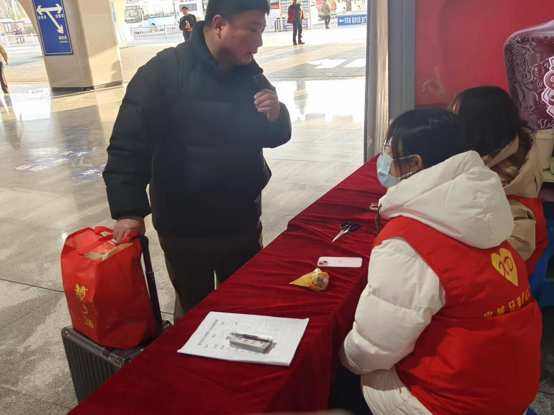 面对春运高峰期的挑战,志愿者们用真诚与耐心化解难题。在自助售票机旁,团队成员同学帮助一对老年夫妇操作购票系统时,发现他们对电子支付存在顾虑,便主动垫付现金并耐心讲解线上支付的安全性。“穿上志愿者马甲,我们就是家乡的‘门面’”。参与服务的2024级新能源材料与器件专业员工说,“看到旅客们顺利踏上归途,听到一声声‘谢谢’,我深刻体会到青年服务社会的价值”。