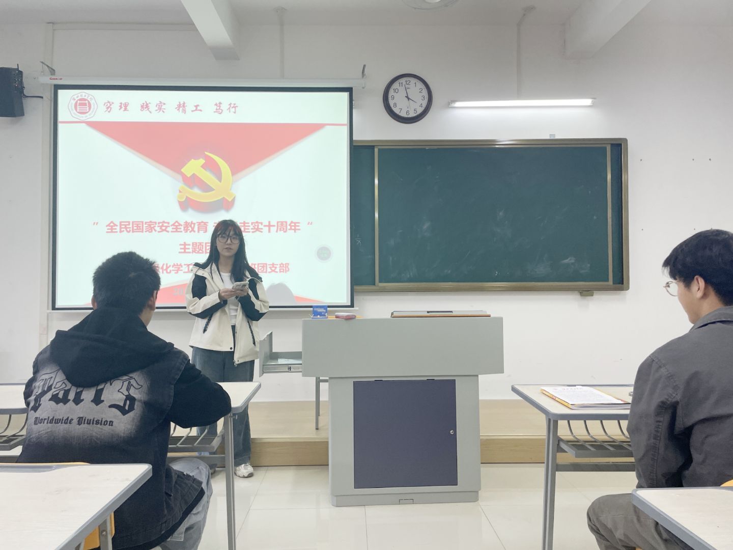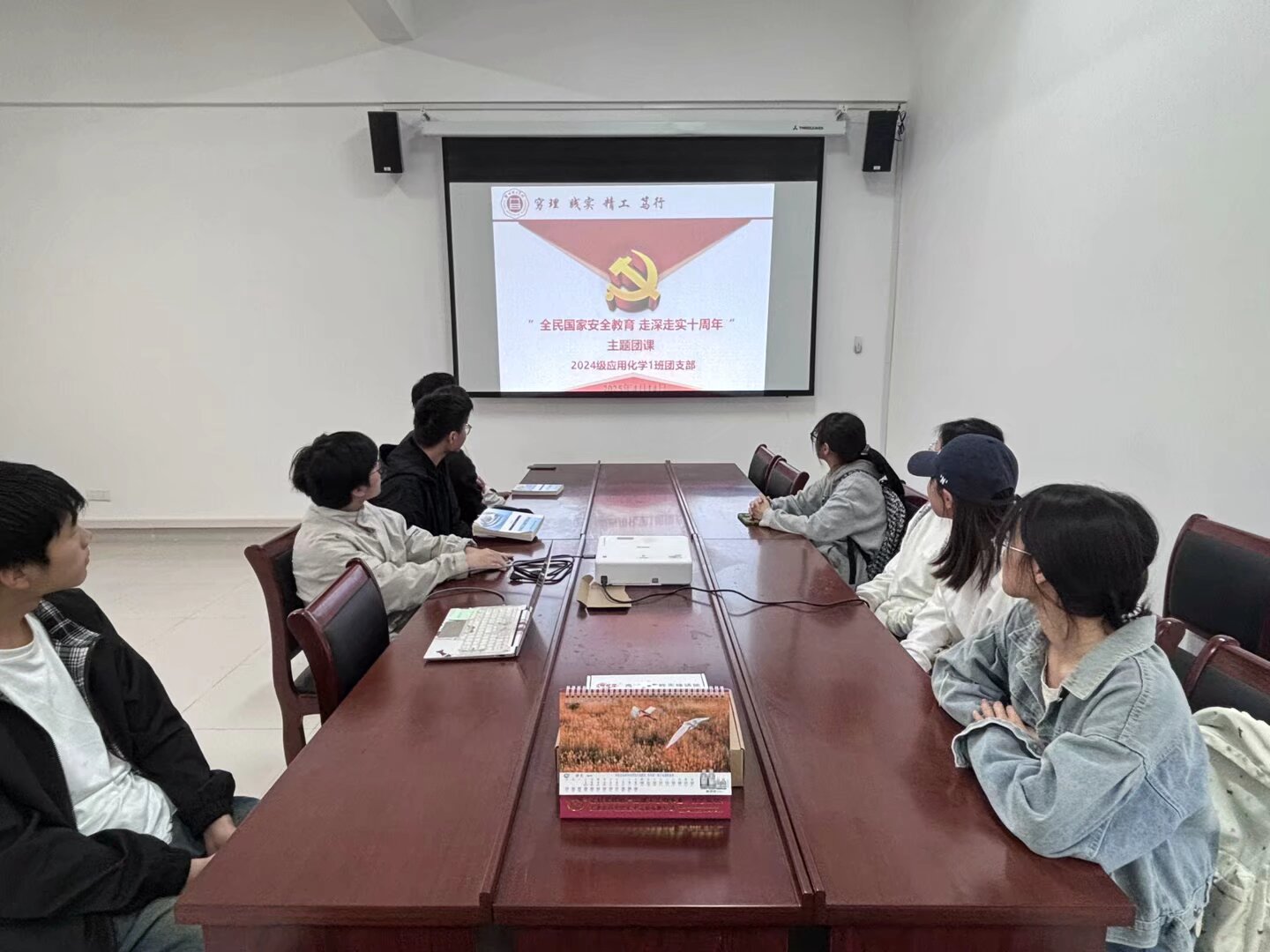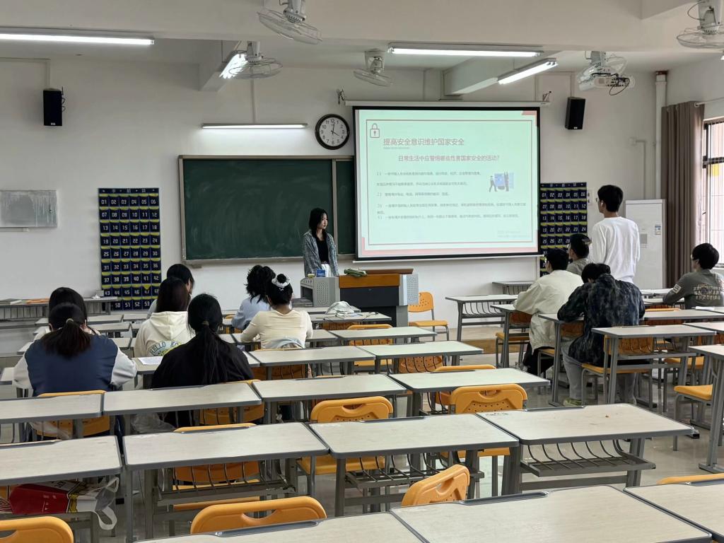 “全民国家安全教育,走深走实十周年”团课作为此次系列活动的开篇,各团支部书记担任主讲人,深入解读国家安全的内涵与外延。从传统的政治安全、国土安全,到非传统的网络安全、生态安全、能源安全等领域,结合当下国内外形势,通过生动案例和数据,让同学们深刻认识到国家安全与每个人息息相关。在互动环节,同学们踊跃提问,就如何在日常生活中维护国家安全展开热烈讨论,进一步加深了对国家安全重要性的理解,为后续活动的开展筑牢了坚实的思想根基。