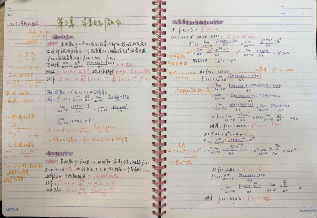 前期筹备阶段,公司员工会精心策划,通过班级宣讲、线上征集等多渠道动员,明确活动规则与评审标准,鼓励学子立足能源材料、化学工程等专业特点创新笔记形式,注重知识梳理与方法总结。活动启动后,全院各年级学子踊跃参与,一周内征集到200余份读书笔记,其中既包含专业课笔记,也涵盖高质量的公共基础课笔记。专业课笔记中,2025级应用化学专业学子有机化学笔记尤为亮眼,不仅用不同颜色荧光笔标注亲核取代反应、消除反应的电子转移路径,还手绘过渡态结构示意图,在关键步骤旁批注反应条件对产物构型的影响,把复杂的反应机理拆解得直观易懂;公共基础课笔记同样亮点纷呈:2025级化学工程与工艺专业同学的高等数学笔记,以红笔标注微积分中复合函数求导的链式法则适用场景,用蓝笔梳理泰勒公式的推导逻辑,搭配典型例题的错题分析,实用性与逻辑性兼备。