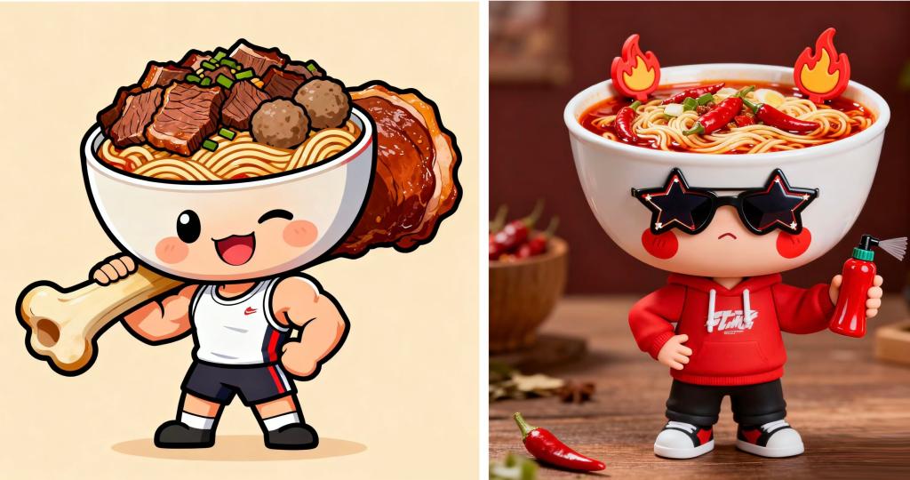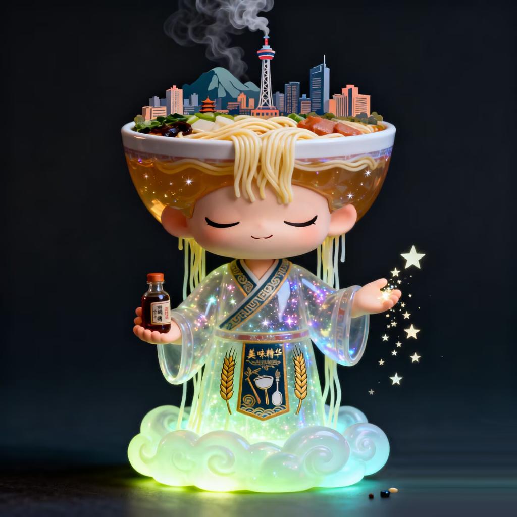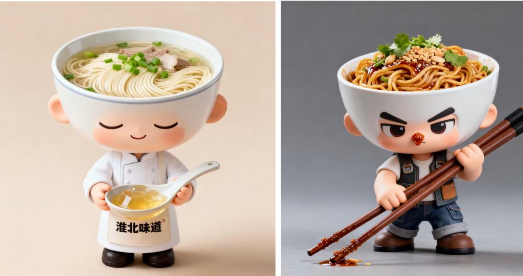 在设计层面,团队巧思尽显:所有“小宝”均以“面碗”为头部造型,碗中“面条”与“配料”精准还原对应风味特色;采用2.5头身的Q版体态,搭配贴合口与味份的服装、道具,生动鲜活。同时融入可动筷子、可拆卸肉骨棒等高互动性配件,辅以果冻质感汤勺、珠光漆面鸡蛋等特殊工艺,进一步强化玩家与产品的情感联结。这一项目不仅唤醒了美食爱好者的味蕾记忆与情感共鸣,更以潮玩形式打破次元壁垒,让淮北烫面文化触达年轻群体,为地方美食名片的社交传播开辟了全新路径,其创意设计与商业潜力也赢得大赛评委的一致认可。